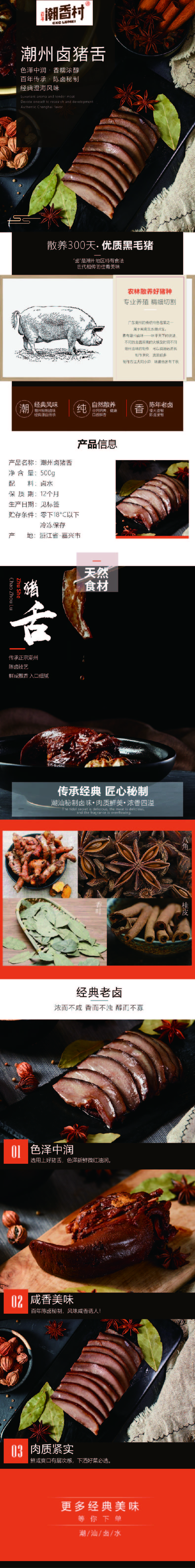 產品介紹:潮州鹵豬舌——選用新鮮上好豬舌,色澤新鮮微紅油潤,百年陳鹵秘制,風味咸香誘人,入口爽口有層次感,下酒好菜必選。